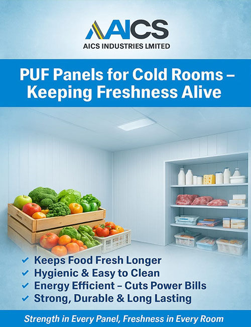 AICS Industries Limited delivers cutting-edge PUF Panel solutions designed specifically for food cold rooms, ensuring that freshness, hygiene, and efficiency go hand in hand. Our insulated panels help keep fruits, vegetables, dairy, and meats fresher for longer by maintaining optimal temperatures and reducing spoilage. Engineered to be easy to clean, energy-efficient, and highly durable, these panels provide unmatched performance for food storage environments. Whether you're in food processing, retail, or distribution, AICS PUF Panels offer a long-lasting solution that reduces energy costs while preserving product quality. With AICS, you're not just storing food you’re protecting freshness.