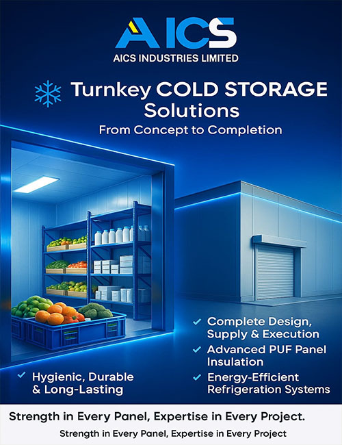 At AICS Industries Limited, we offer complete turnkey cold storage solutions that combine innovation, reliability, and industry expertise. From initial concept and design to supply and full execution, we deliver end-to-end infrastructure tailored to your storage needs. Our cold rooms are built using advanced PUF panel insulation, ensuring exceptional thermal efficiency, durability, and hygiene. Backed by energy-efficient refrigeration systems, our solutions reduce operational costs while maximizing performance. Whether you're storing fresh produce, pharmaceuticals, or frozen goods, AICS ensures strength in every panel and excellence in every project making us your trusted partner in cold chain infrastructure.